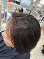 赤みピンクで白髪ボカシ。 暖かみのある赤みピンクで白髪にしっかり色を入れ地毛は明るすぎず伸びて来た時に気になりにくい明度で。柔らかい雰囲気にピッタリです。