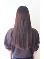 矯正履歴のあるロングを髪質改善カラーをしながら水素ケア。乾燥しやすい毛先も髪の内部から水分で満たされるのでしっとり艶やかにまとまります。カラーはオリーブグレージュで透明感をプラス。