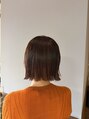 ぷつっとラインが可愛いミニボブに、ふんわり暖色系カラーで艶感アップ。ナチュラル仕上げでも大人っぽく、アイロンで外ハネにすると一気にこなれ感◎大人かわいいを楽しみたい方にオススメです!