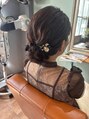 波巻きの低めのシニヨンです!飾りをポイントに綺麗めなスタイルです!