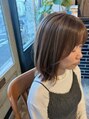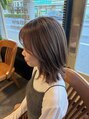 全体にハイライトをし、イルミナカラーでグレージュ系に。透明感のあるベージュになりました。セットはヘアアイロンで。肩にハネる長さなのでトップのみ内巻きにしてあげると簡単にスタイリングできます。仕上げはオイルで。