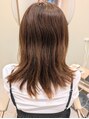 - 髪質改善と透明感グレージュで柔らかい質感のミディアムウルフに。