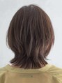 オシャレなウルフミディアムヘア。全体的なシルエットはふんわり丸くエレガントに仕上げつつも、毛先を外巻きにすることで都会的なクールさをミックスしたスタイルに。肌なじみの良いオレンジブラウンのカラーで、血色感と明るさもプラスできます。