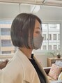 プツッとボブ×グレージュカラー!光に透けるカラーと顎ラインボブは大人気のスタイルです◎