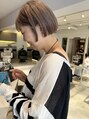 ぱつんとボブ♪襟足ギリギリまで短いのがとってもかわいい!ブリーチは一回で肌馴染みのいいミルクティーベージュに^^