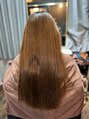 赤みやオレンジ色が出やすい髪質を、ベージュカラーをベースにアッシュとオリーブを配合して柔らかいベージュに調節して透明感ある仕上がりにしています。光に当たると透ける、赤みレスな自然なツヤ感がポイント。赤みオレンジ褪色が気になる方にオススメ。