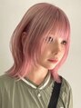 横浜ダブルカラーミディアムボブコーラルピンクベージュカラー