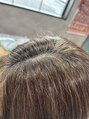 白髪が多くあるお客様。少しでも伸びた時にわかりにくいように白髪ぼかしカラーを。ハイライトで明るくして、白髪も9レベルになるように染めました。