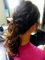 編み込みで集めたダウンポニー結婚式などでオススメ編み込みで可愛く華やかな巻き髪でまとめました
