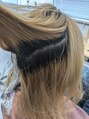 リタッチと毛先のトーンアップにブリーチを使用ペールイエローを少しくすませたミルクティーカラーです