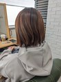 褪色過程の黄味をおさえるのにバイオレットをまぜたラベンダーブラウンです艶感と収まりを重視したボブスタイルです
