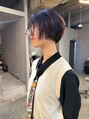 ショートボブにラベンダーカラーをいれた個性あるスタイル。モデルさんは硬毛癖毛さんで膨らみやすいですがバランスをみた毛量調整とセットが楽になるようなシルエットに設定しました。ストレートパーマをかけて癖毛を自然にとるとより毛量も抑えられます