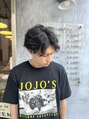 強めのスパイラルパーマで、ランダムで動きのあるワイルドな束感を強調したマッシュスタイル。襟足は刈り上げですっきりとさせ、重すぎない印象に。個性を出しつつ、男らしさも際立つスタイルです。