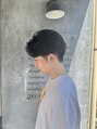 センターパートで爽やかさを演出し、毛先のワンカールパーマで動きと柔らかな質感をプラス。サイドと襟足は刈り上げ、すっきりとした清潔感を残しつつ、今っぽいトレンド感も表現。