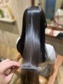 クセで悩むお客様に縮毛矯正をかけたスタイルです。熱によるダメージは若干ありましたが全体に施術が出来たので根元から毛先までツヤのある仕上がりになりました。
