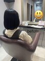 初めてのお客様です。ハサミのカットラインを残したい。それ以外はぼぼお任せのお客様でした。括る事もあり、残り毛を落としてもサイドのパツギリが落ちても可愛くなるようにカット致しました。バックとは繋げてはいないのですが、とてもお似合いですね。