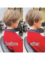 【ブックマークをする】でカウンセリング時にご提示ください。ショートヘアのお客様の約9割からご指名をいただいております。髪質や輪郭に合わせた丁寧なカットで、ご自宅でも扱いやすく品のあるスタイルに。大人女性から長くご支持をいただいております。
