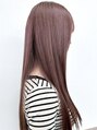 人気の縮毛矯正×ワインレッドカラー、クセを自然に伸ばしながら、毛先までツヤのあるストレートに仕上げました。透明感のあるワインレッドカラーで、ストレートでも柔らかく見える大人可愛い質感に。広がりやすい髪・うねりが気になる方におすすめです