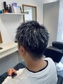 ショートスタイルにホワイトメッシュとツイスパを合わせた王道スタイルです!!ワックスいらずで決まるし、ワックスをつけたら更にかっこよくなります。