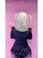 ブリーチを3回してホワイトカラーに仕上げました。ムラシャンを続けると維持できます!ポイントでティンセルつけて派手さアップしてます!