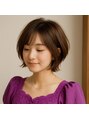 軽やかな動きのあるボブ。顔まわりに薄くレイヤーを入れて、毛先が自然にふわっと収まるシルエットに。柔らかな揺れ感が上品で女性らしい印象をつくるスタイル。