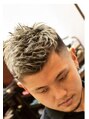周りをツーブロックし、トップを長めに残したショートレイヤースタイル。束感がでるように質感調整をしています。
