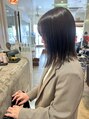 顔まわりのレイヤーが可愛い前下がりボブ。