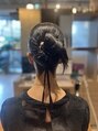 流行りのカチモリ縦リボンアレンジ。縦リボンを斜めにして飾りをプラス。三つ編みも垂らしてかわいさアップです♪