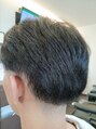 横~後ろに(2ブロ)繋げて0、1mmで刈り上げトップは長さを程々に残しました。横後ろがとってもスッキリして今時のメンズには多い髪型です。