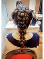 大人可愛いポニー編みおろしロープ編み込み和装ヘアセット