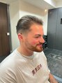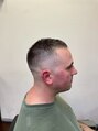 外国人ならではの骨格を活かしたフェードスタイル。肌までつなげるグラデーションで、清潔感とシャープさが際立つ王道フェード。短くタイトなシルエットが横顔をよりスタイリッシュに見せ、どの角度から見てもかっこよく決まります。