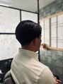 定番のパートスタイル!テーパーフェードで裾をスッキリさせて、清潔感あるヘアスタイルです。