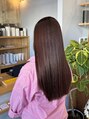 髪質改善カラーで赤みをおさえたオリーブ系のカラーで透明感と柔らかさをプラス◎透明感たっぷりなのでロングでも軽い印象になります!