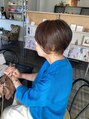 後頭部にふんわり丸みを出した大人ショート。襟足はタイトに引き締めて、首元がすっきり見える上品シルエットに。柔らかいブラウンカラーでツヤと立体感がアップ。どの角度から見てもキレイなフォルムになるようカットしています。