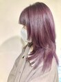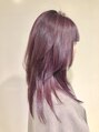 ロングのハイレイヤースタイル。人気の暖色カラーでツヤ感のある仕上がりに。