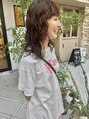 レイヤーの入ったミディアムスタイルにパーマのクシャクシャ感を合わせて顔まわりに動きと軽さのあるスタイルに。