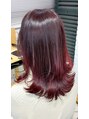 ベースのグラデーションを活かしたレッド系グラデーションカラーのミディアムレイヤースタイルです☆