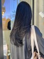 黒髪のロングスタイルです。ストレートベースにレイヤーを入れて毛先に動きをつけています。暗めの髪色でもレイヤーを入れることで空気感のある動きが出やすくなるのでおすすめです◎