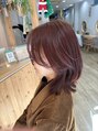 ワイドバングにサイドに流れるような段を入れ動きのあるスタイルにお手入れがし易いのでオススメです!また艶感が出るピンク色がすごくマッチします。