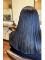 ネイビーブルーにトーンダウンされたお客様。外の光でほんのりブルーの色味が出て綺麗です。