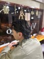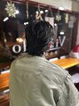 後ろに自然に流れる濡れ感のあるセンターパート風スタイル。サイドはすっきり目にカットしてあるので重たく見えず、トップの束感とツヤが大人っぽい雰囲気をつくります。ラフに手ぐしで整えるだけでキマる、扱いやすいスタイルです。