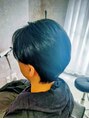 メンズグレイカラーコースです!日に当たると透明感ある黒になるアッシュブラックです!カットは今流行のコンマバングとなっています!
