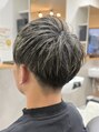 立体感が際立つメンズメッシュスタイル。細かく入れたハイライトが髪に自然な陰影を作り、重たく見えがちな髪も軽やかで動きのある印象に仕上がります。オンとオフどちらでも好印象を与えます。白髪ぼかしとしても効果的で、年齢問わず挑戦しやすいデザイン。
