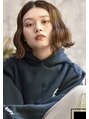 波巻きで女の子らしさを出しつつ、ストリート風のファッションで雰囲気を。