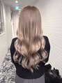 透明感のあるミルクティーベージュのロングヘア★黄ばみはできるだけ減らして、トリートメントとの同時施術でツヤ感たっぷり!プルエクステを装着のため、色落ちをしても馴染むように若干グラデーション仕上げにさせていただきました。