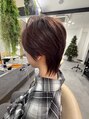 襟足を残したショートウルフヘア。トップにボリュームを持たせたバランスの良いシルエット。カラーは冬らしいピンクバイオレットで!