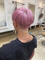 2回ブリーチで脱色した後に少し薄めに作ったピンクをオンカラーしました!ピンクが抜けたあとも綺麗なブロンドカラーになります!次のカラーにも影響の出ないので、色んなカラーをされたい方にオススメです。