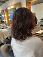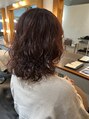 ボブウルフ×パーマのミディアムスタイル。レイヤーを多めに入れて、立体感、動き、くびれをつくりました。更に動きを強調し、くせ毛のようなカールがつくようにパーマをプラス。スタイリングしやすく、扱いやすく、アレンジも楽しめるパーマデザインです