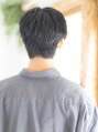 サイドは刈り上げでスッキリさせ、襟足は刈り上げなしでナチュラルなイメージでカットされています。長さはパートをつけて頬骨ライン、耳が少し隠れるくらいの長さなので清潔感があり、強いパーマではなくナチュラルなので様々なファッションに馴染みます。