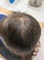 赤味を抑えたくすみのあるベージュ系カラー。根元から透明感のある明るさと白髪も同時にカバーしています。白髪比率40%